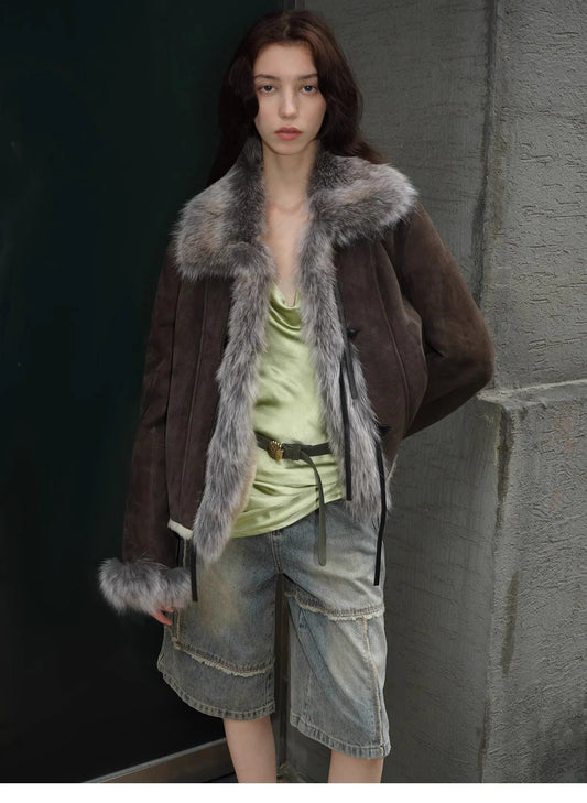 "Autumn Basel" Imported Tuscan Sheepskin Half-Roll Short Casual Fur Coat