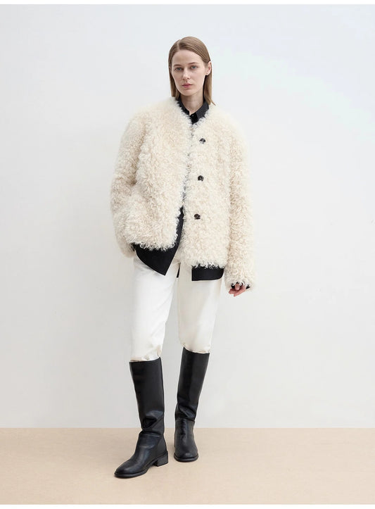 "Double-Sided Fantasy" Simple Elegant Casual Double-Sided Tuscan Wool Sheepskin Fur Coat for Women